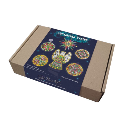 Набор со стразами Ukrainian Christmas — это творческий комплект для создания новогодних ёлочных украшений своими руками. Готовые изделия будут выглядеть нарядно и блестяще, наполняя дом атмосферой праздника. Игрушки можно повесить на ёлку или прикрепить на присоску к окну. Набор развивает аккуратность, внимание и творческое мышление.
