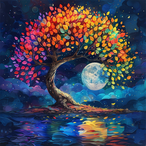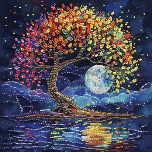 Алмазная мозаика "Красочное дерево" BH020 неполная выкладка 25х25 см