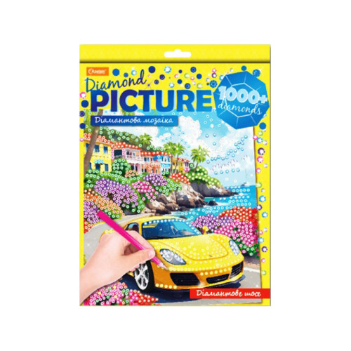 - картинка для декорирования диамантами 200×250 мм (кашированный картон, печать флуоресцентными красками, клеевой слой под декоративные диаманты, покрытый защитной плёнкой) — 1 шт;
