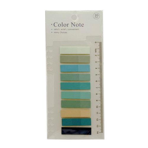 Закладки-липучки "Stick Notes" Р80 представляют собой цветные стики размером 11х45 мм, размещенные на планшетке размером 8,5х20 см. Планшетка оснащена отверстиями для установки в органайзер и линейкой. Всего на планшетке представлено 10 различных цветов.