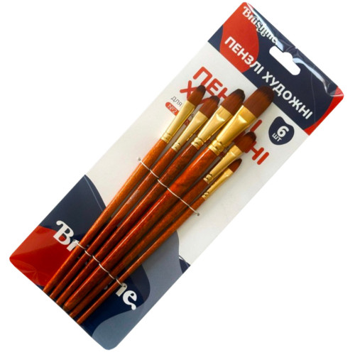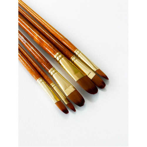 Набор из шести кистей формы "филберт" для художественных работ.