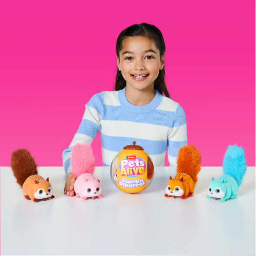 Познакомьтесь с очаровательной розовой белочкой из коллекции Pets Alive! Интерактивный питомец с пушистым хвостиком и милыми звуками не оставит никого равнодушным. Погладьте белочку по голове — и она начнёт бегать, издавать забавные звуки и вести себя как весёлая лесная зверушка!