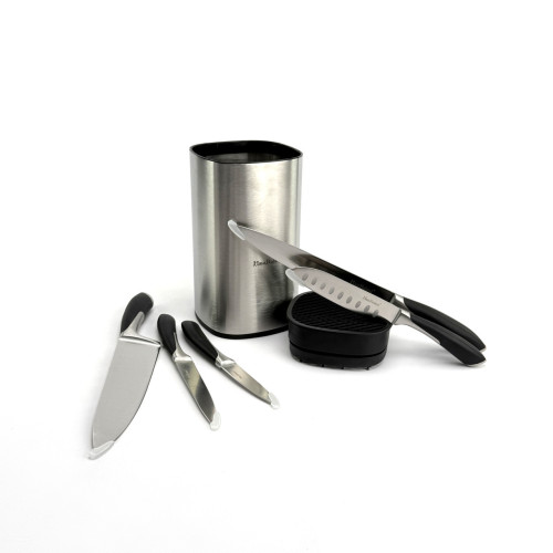 Цельнометаллическая конструкция: Ножи и подставка полностью из нержавеющей стали.