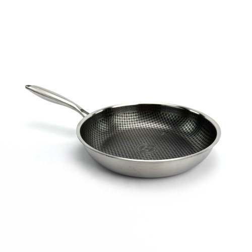Сковорода OSFE EB-7522 создана для тех, кто ищет бескомпромиссное качество. Ее главная особенность — гибридная внутренняя поверхность: на антипригарный слой (PFAS Free) нанесена сетка из нержавеющей стали. Эта стальная сетка защищает антипригарный слой от повреждений, позволяя использовать даже металлические аксессуары, и обеспечивает превосходное распределение масла.
