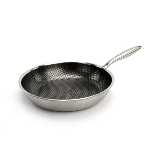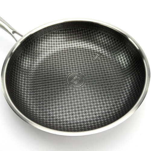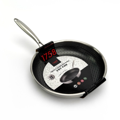 Сковорода OSFE EB-7528 создана для тех, кто ищет бескомпромиссное качество. Ее главная особенность — гибридная внутренняя поверхность: на антипригарный слой (PFAS Free) нанесена сетка из нержавеющей стали. Эта стальная сетка защищает антипригарный слой от повреждений, позволяя использовать даже металлические аксессуары, и обеспечивает превосходное распределение масла.