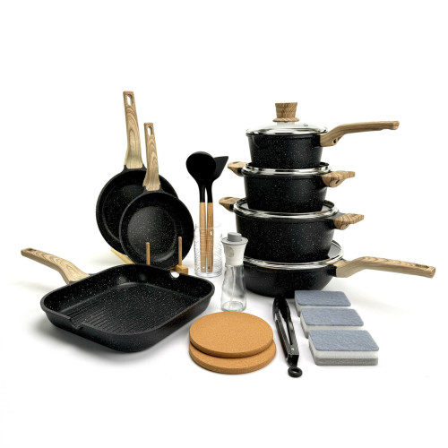 Набор посуды Caannasweis YMX-19-2 (19 предметов) из литого алюминия. Черный (YMX-19-2)