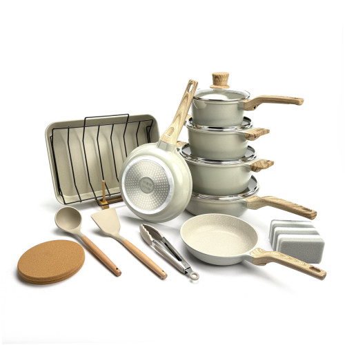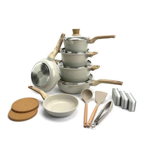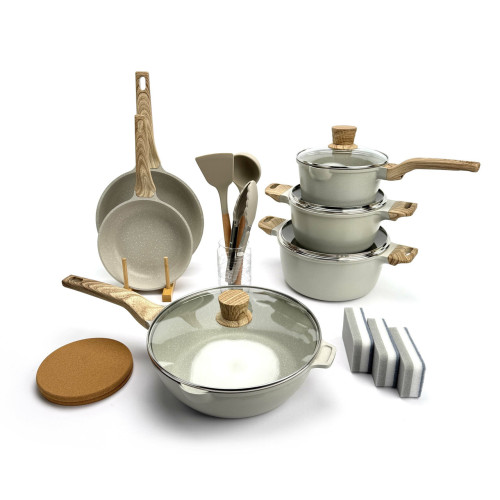 Этот набор создан, чтобы закрыть все ваши кулинарные потребности. Основа посуды — цельнолитой (Die-Cast) алюминиевый корпус, который отличается прочностью, устойчивостью к деформации и при этом остается легким. Утолщенное дно (6.35 мм) гарантирует отсутствие "горячих точек" и идеальное, равномерное распределение тепла.