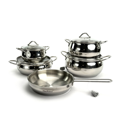 Набор посуды Haus Roland HR160-1 — это фундаментальное решение для полностью оборудованной кухни. Благодаря расширенной комплектации, включающей четыре кастрюли разного размера и универсальную сковороду, вы сможете с легкостью варить, тушить, томить и жарить любые блюда.