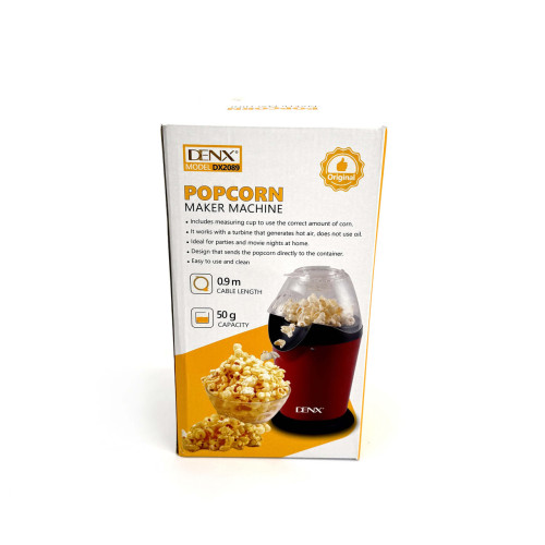 Аппарат для попкорна DENX DX2089 — электрический аппарат для приготовления попкорна с использованием горячего воздуха, поэтому он не требует масла для приготовления снеков. Такой способ приготовления делает попкорн более здоровым и диетическим.