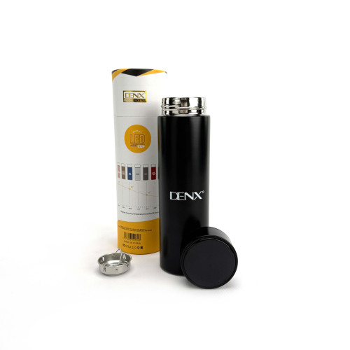 Термос DENX DX1703 — это умный вакуумный термос объёмом 500 мл, оснащённый индикатором температуры и ситечком для заварки чая. Он идеально подходит для путешествий, офиса, прогулок или повседневного использования.