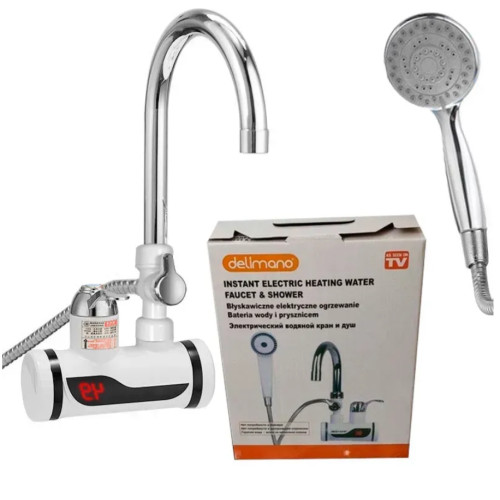 Проточный водонагреватель Delimano с LCD и душем с боковым подкллючением, 3кВт / Кран водонагреватель