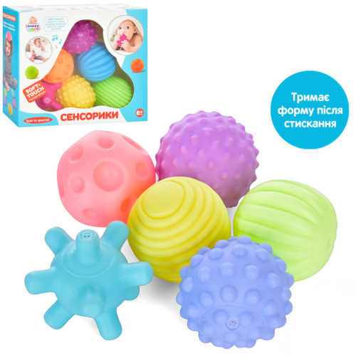 Набор мячиков для купания "Сенсорики" HB0020A пищалка, 6 штук