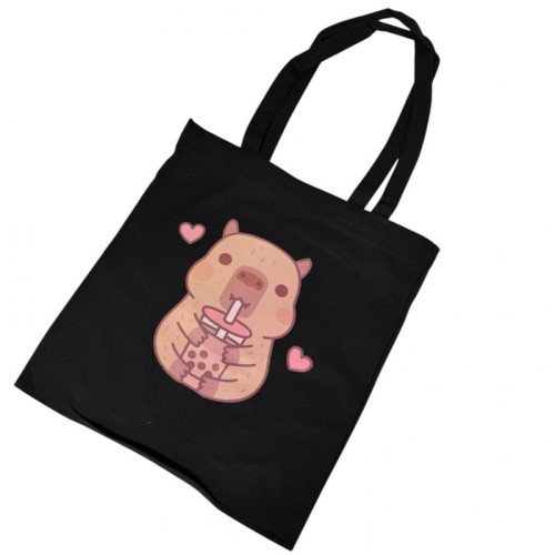 Шопер КАПІБАРА З НАПОЕМ ЧОРНИЙ 40х34см З БЛИСКАВКОЮ, 25-138-BLACK