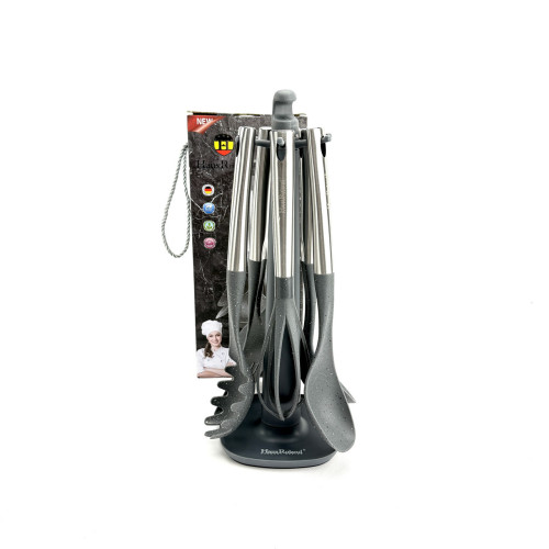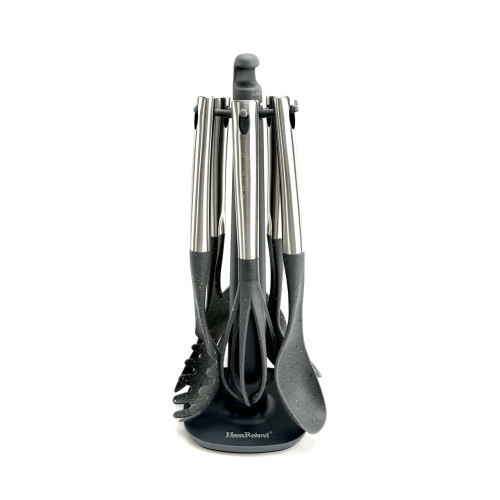 Набор кухонных принадлежностей Haus Roland HR912-1, 7 предметов на вращающейся подставке. Серый (HR912-1)